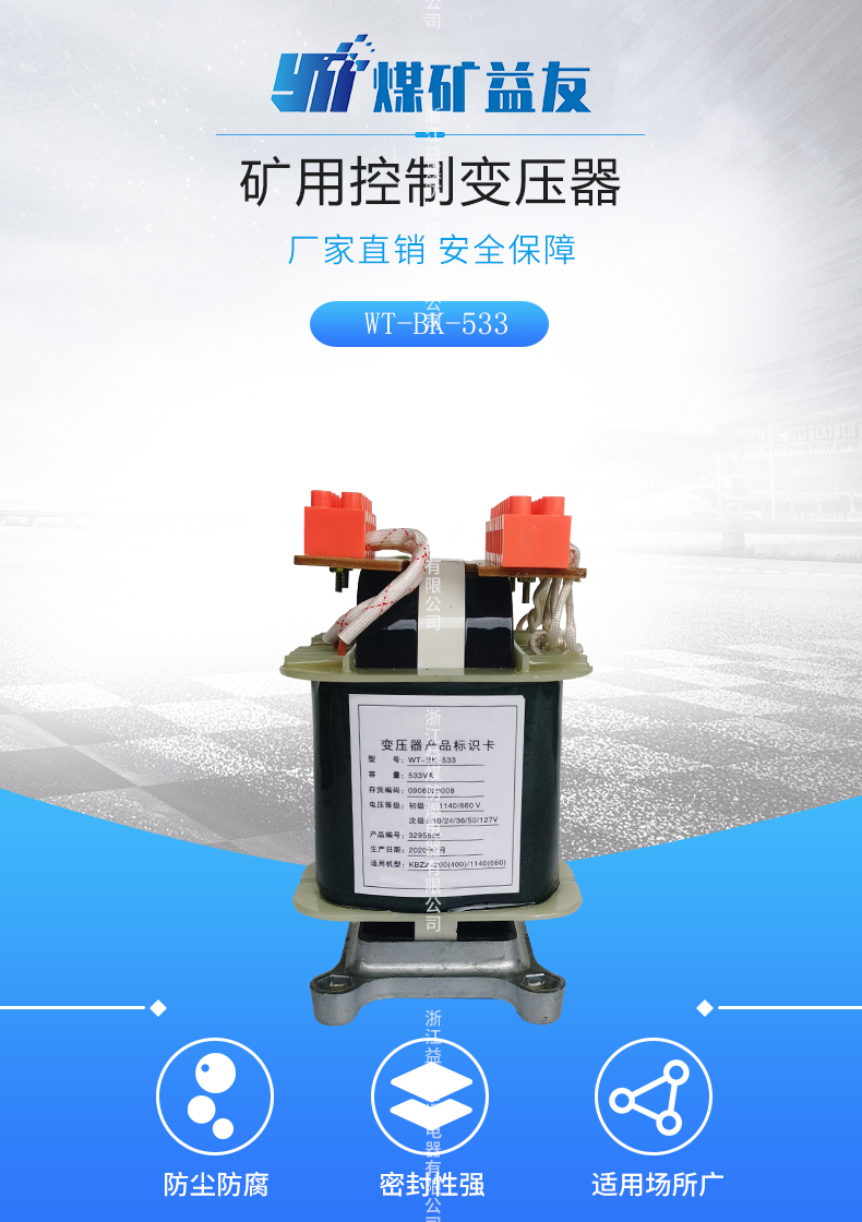 产品作用:BK 控制变压器适用50-60Hz电压至500V的电路中,通常用作机床控制电器或局部照明灯及指示灯的电源之用,广泛用于邮电,商场,电梯,医院,学校,印刷,等所有需要电压正常的场合及大、中型工矿企业车间,部分供电及重要设备和单机配套。