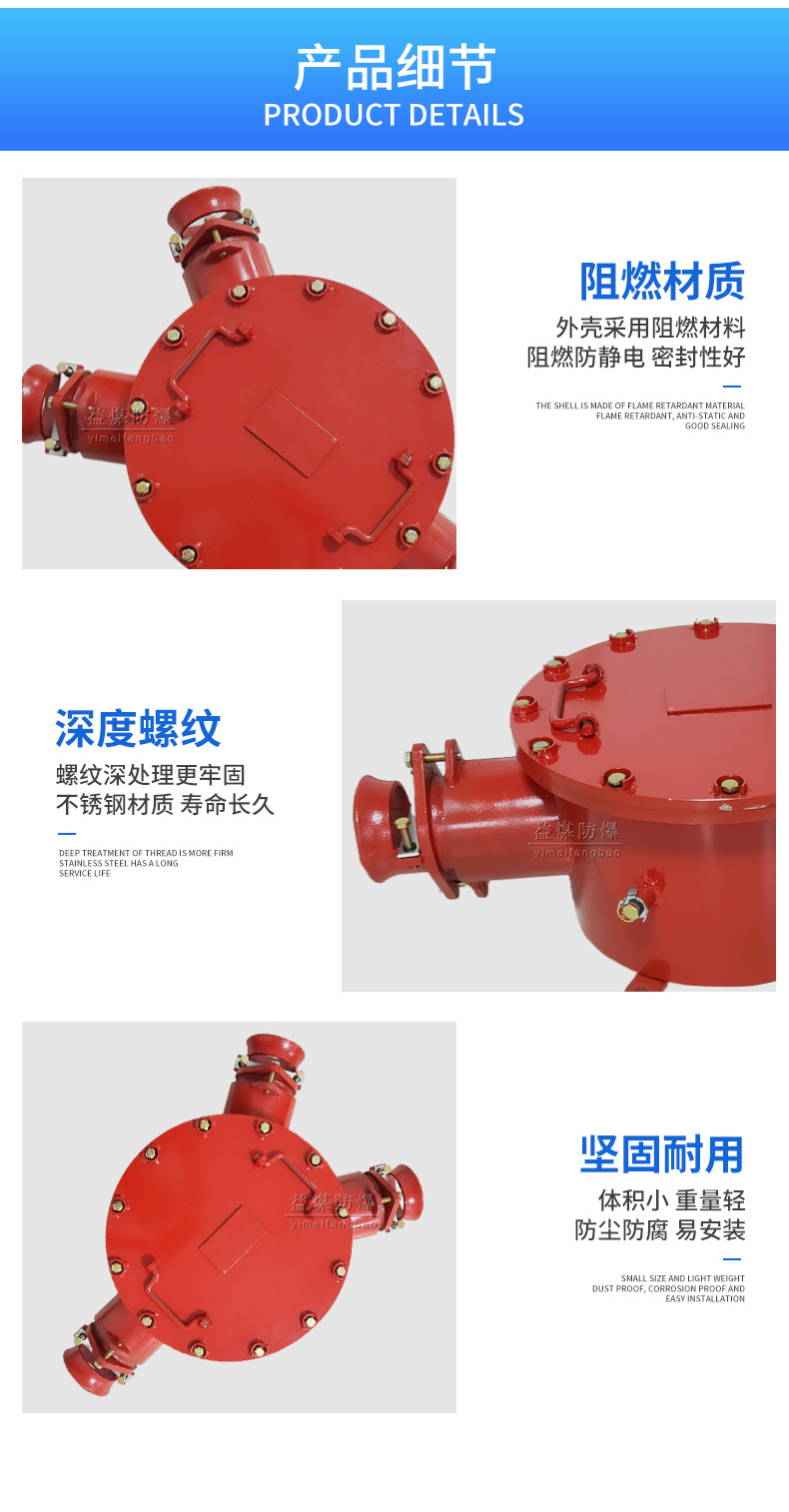1、接线盒主要由隔爆外壳(壳体、盖)、绝缘接线座、电缆引入装置及内外接地等组成;